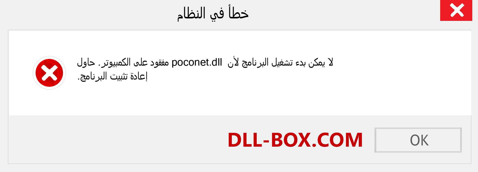 1. لا يمكن بدء تشغيل البرنامج لأن poconet.dll مفقود من جهاز الكمبيوتر الخاص بك. الرجاء إعادة تحميل البرنامج \ التطبيق لعلاج هذه المشكلة.